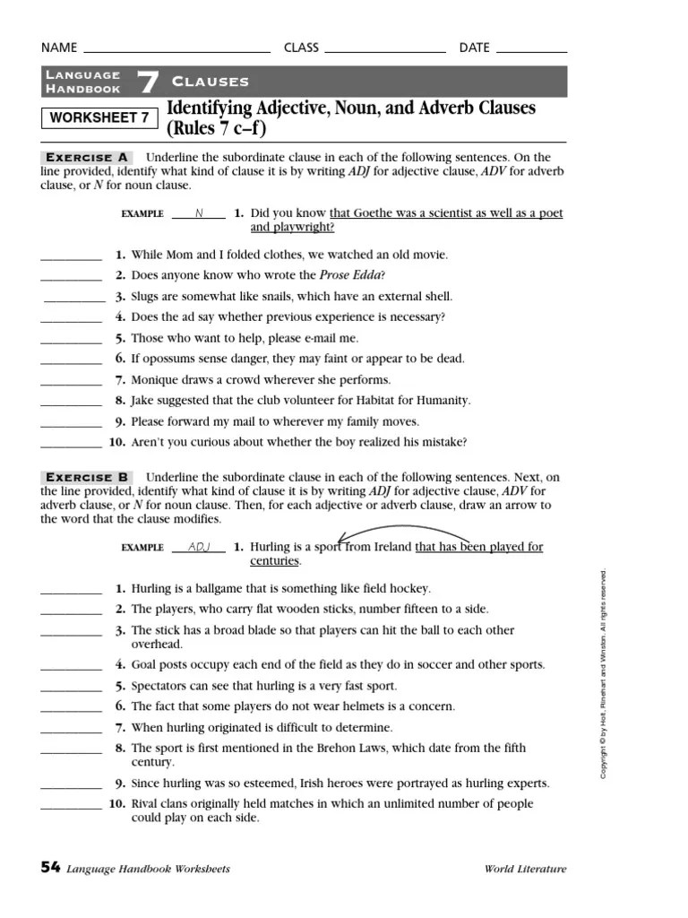 Adverb Clauses Worksheet / 18 Clause Examples Pdf Examples -